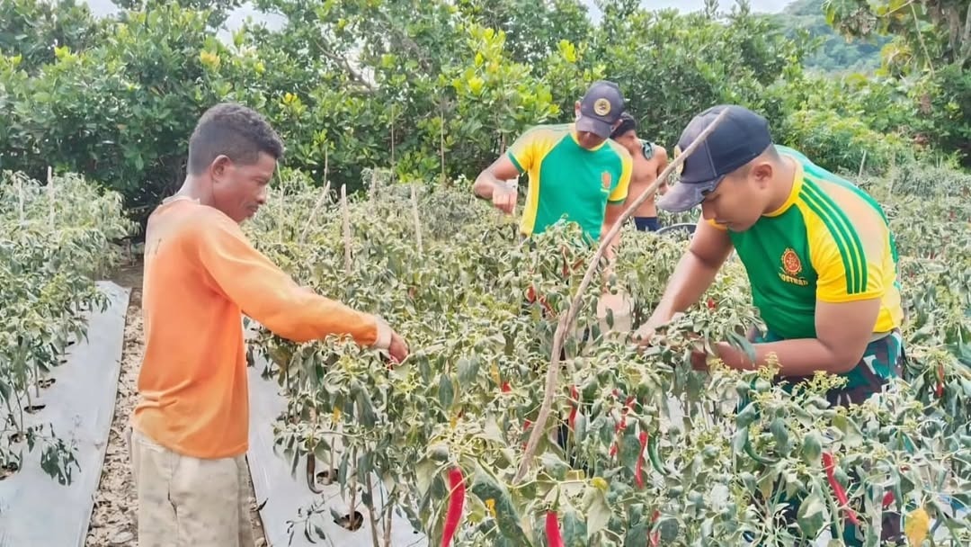 Dengan penuh semangat, prajurit bersama petani setempat memanen cabai yang telah siap dipetik. Komoditas pertanian ini menjadi salah satu sumber penghasilan penting bagi warga. Kehadiran personel Satgas di area perkebunan tidak hanya membantu mempercepat proses panen, tetapi juga memberikan motivasi kepada para petani dalam meningkatkan produktivitas pertanian.