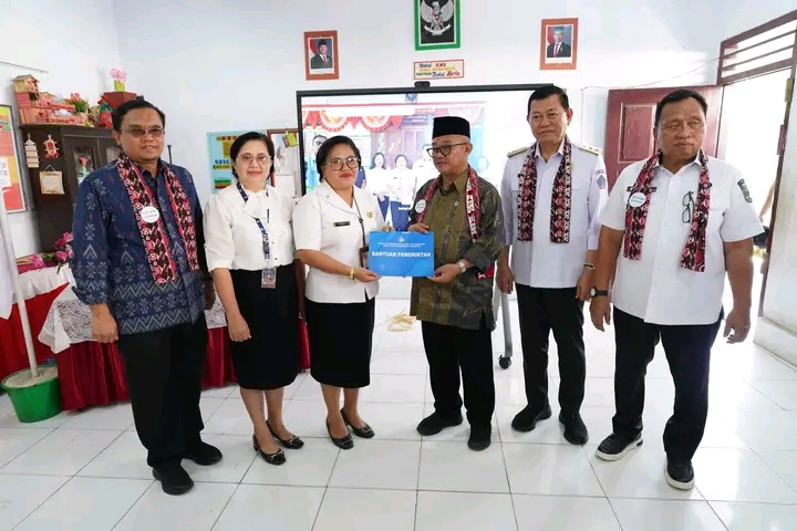 Pada kesempatan ini juga Kepala sekolah SD N Ampreng Sasmi Lumenta menerima Bantuan bagi SDN Ampreng, secara simbolis diserahkan langsung oleh Mendikdasmen RI Abbul Mu’ti, disaksikan Wakil Gubernur Sulut dan Bupati Minahasa.