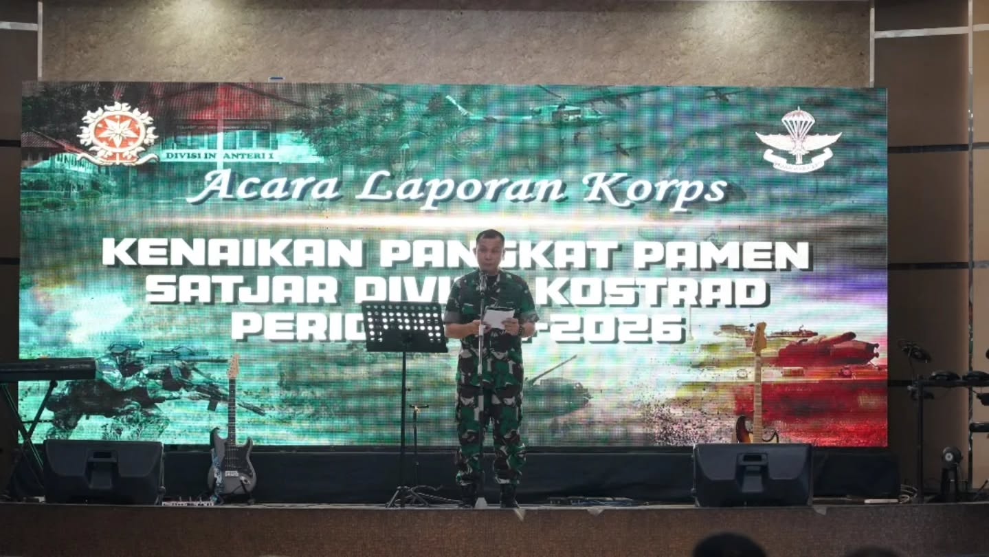 Jurnalline.com, Gowa – Inspektur Divisi Infanteri 3 Kostrad, Brigjen TNI Alexsius Ngurah Adnjana, P.Sc., M.Han., M.S.S.S.D., ndc., CGRA, memimpin langsung acara Laporan Kenaikan Pangkat Perwira Divif 3 Kostrad periode 1 April 2026. Kegiatan berlangsung khidmat di Lobby Lantai 2 Markas Divisi Infanteri 3 Kostrad, Pakatto, Gowa, Makassar, Sulawesi Selatan, Rabu (1/4/2026).